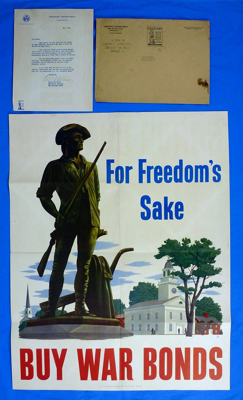 1943 Treasury Department War Bond Poster with Mailing Envelope and Letter