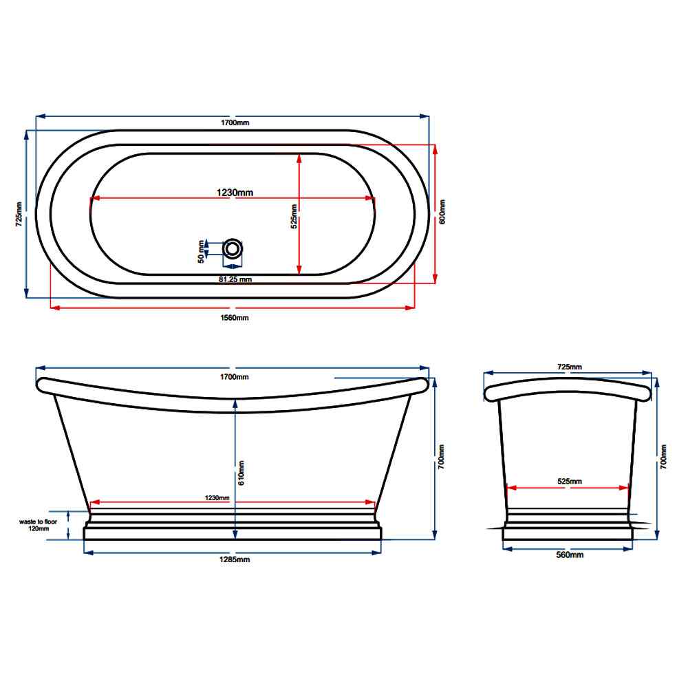 BC Designs 1700 Copper Outer -White Enamel Inner Slipper Bath 1700 x 725