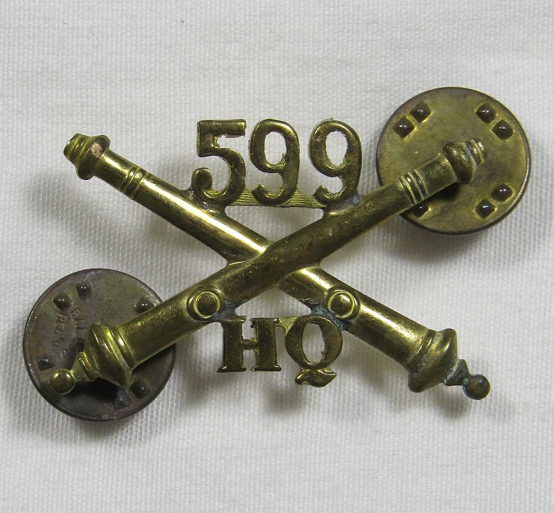 US WWII 599th Field Artillery Headquarters Officer Collar Insignia